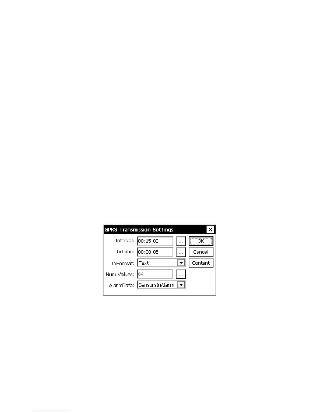 The GPRS transmission settings are accessed by selecting the “Transmit” item under