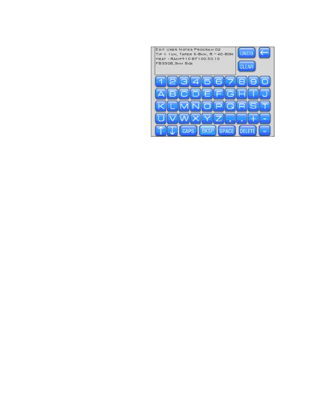 feature will have pre-written text notes detailing the filament, glass, pipette type and