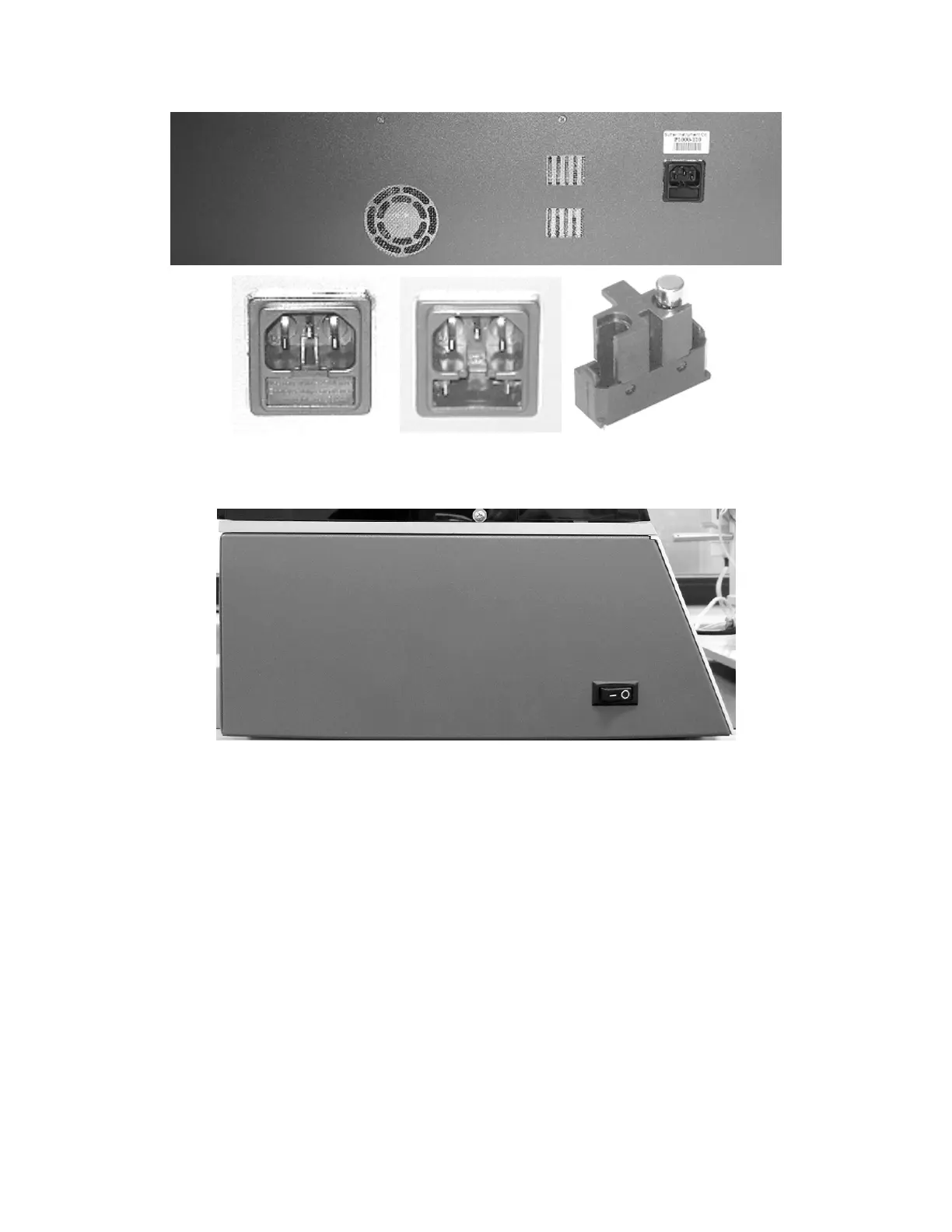 Figure 3-1. P-1000 Cabinet (rear view), detailing power entry module, fuse-holder, fuse, and spare fuse holder.