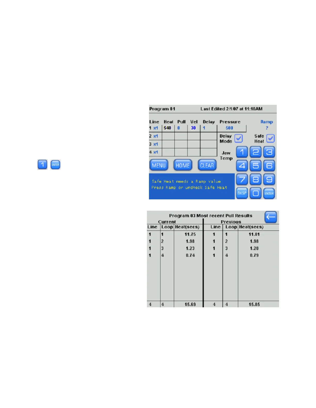separate within 10 seconds. The display will then report the number of heating cycles and