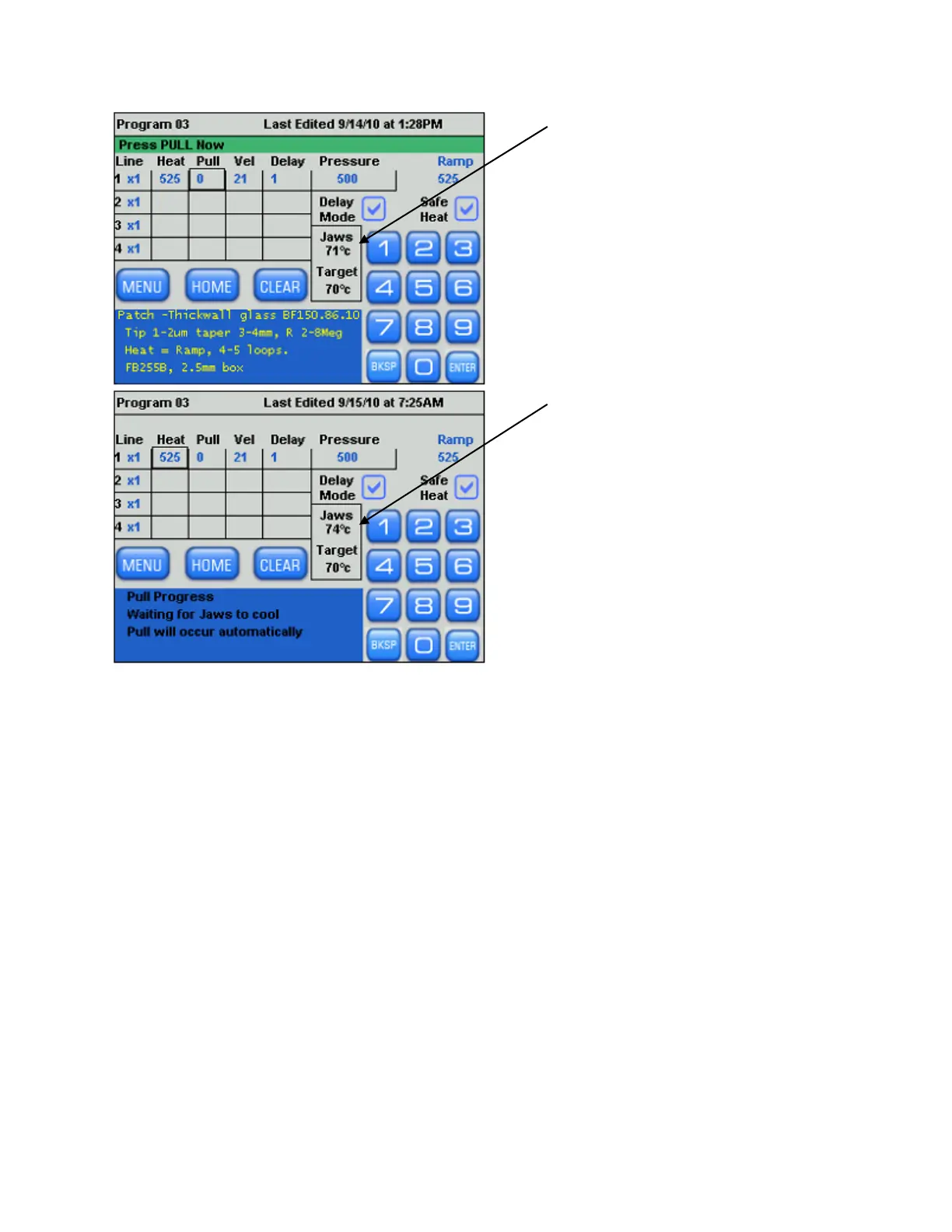 70°C when <PULL> is pressed, the