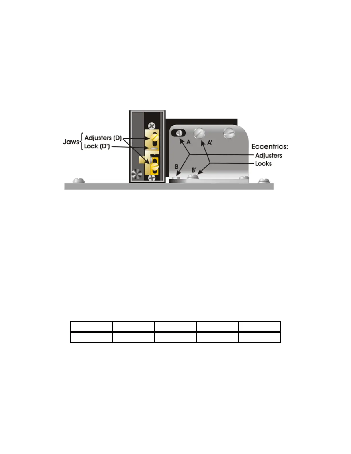 right puller bar. Two chrome eccentric screws (A and B in Figure 5-2) in slots are