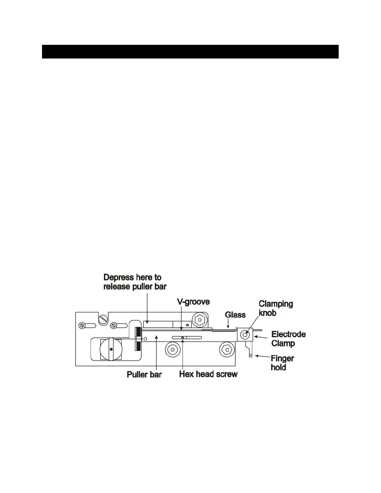 b. Place glass in V-groove in puller bar, slide it beyond the clamp about two centimeters