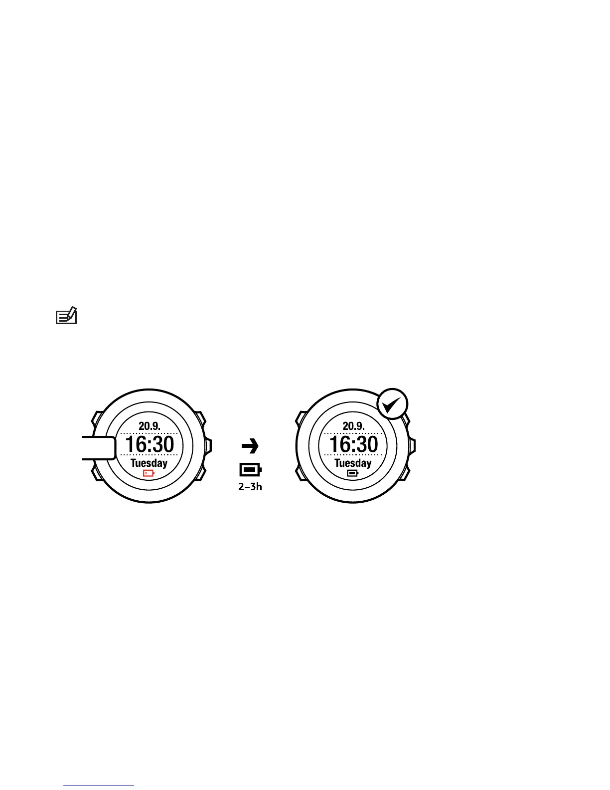 Start by charging the battery. Your Suunto Ambit wakes up automatically when