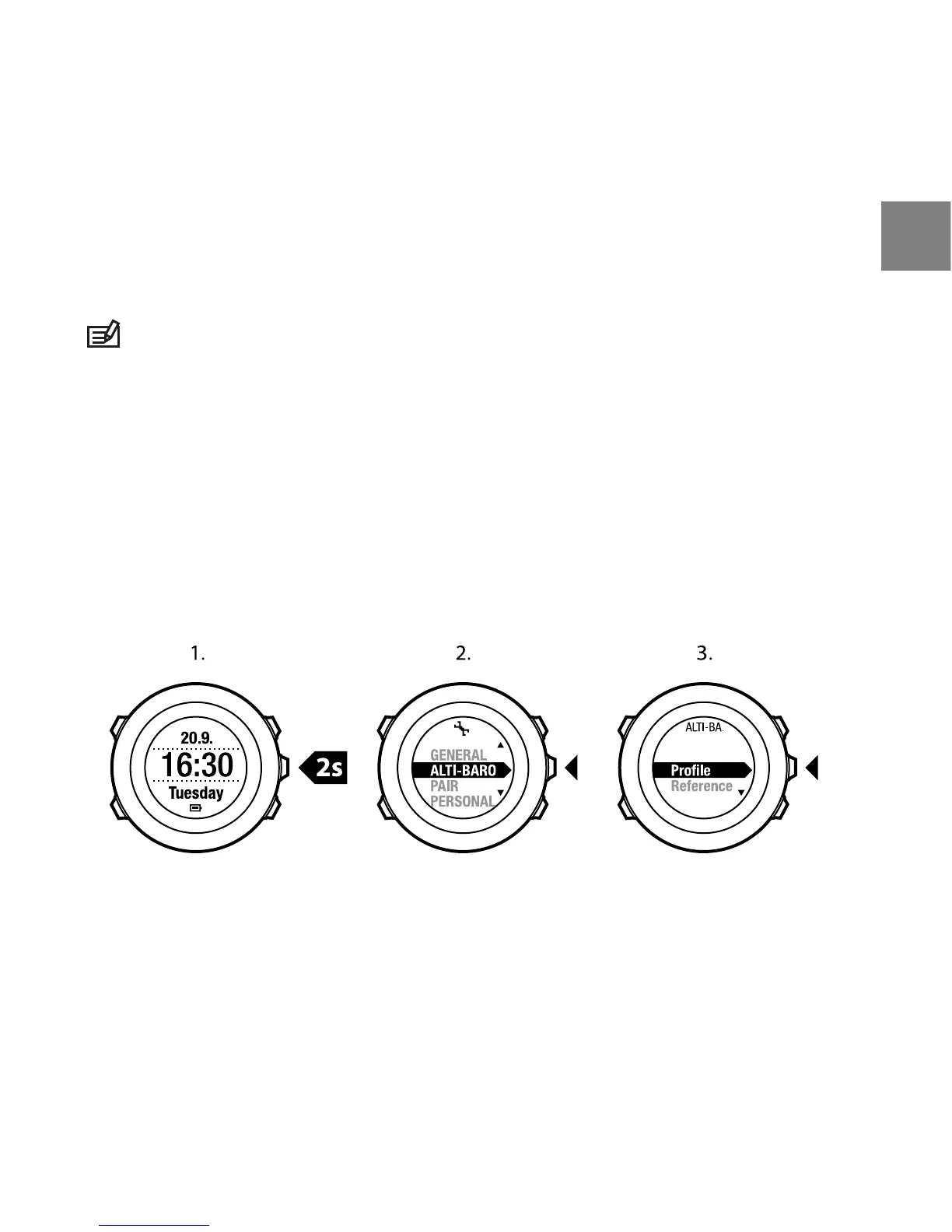 4. Scroll the profile options (Automatic, Altimeter, Barometer) with [Start