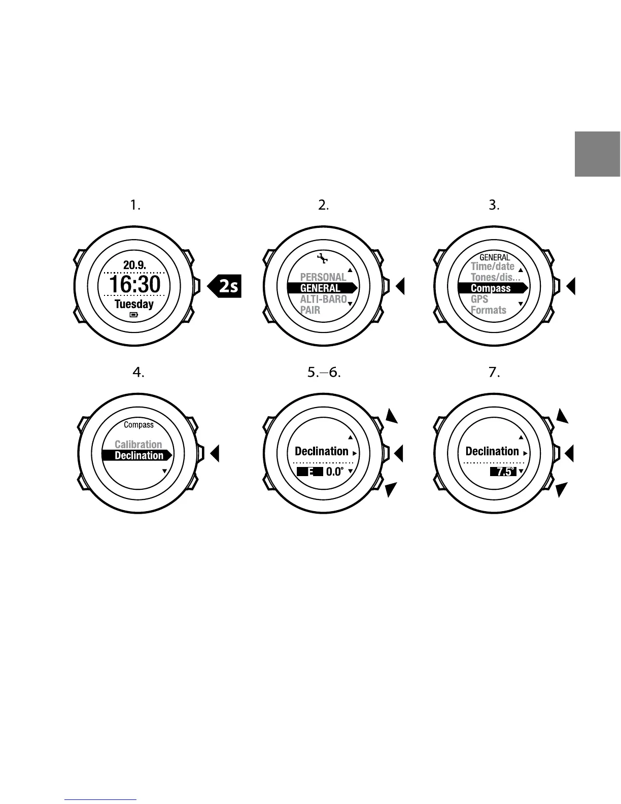 6. Set the declination value with [Start Stop] or [Light Lock].