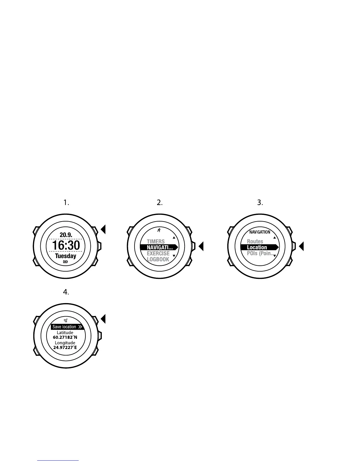 Suunto Ambit2 allows you to check the coordinates of your current location