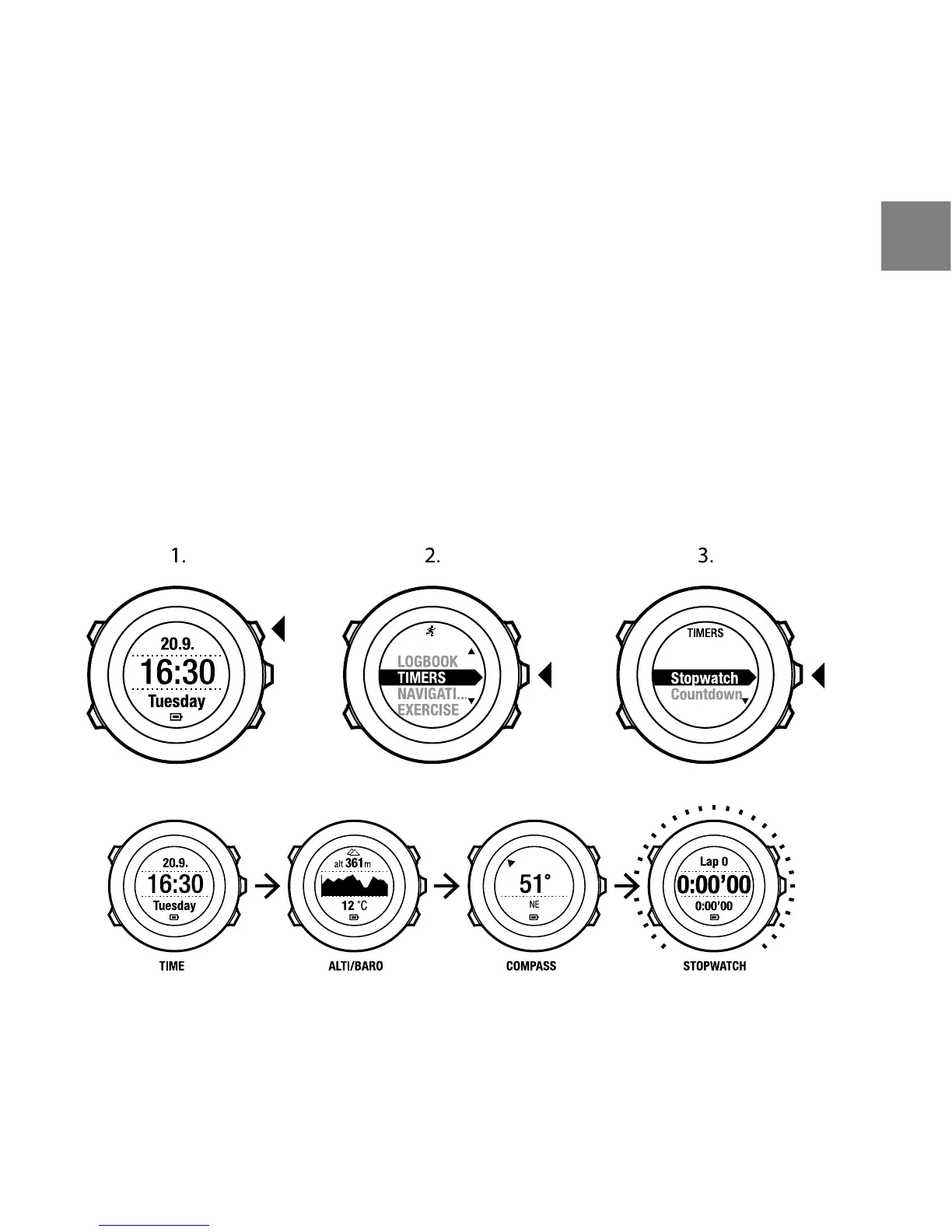 you have activated the stopwatch, it is shown as the last display after the TIME,