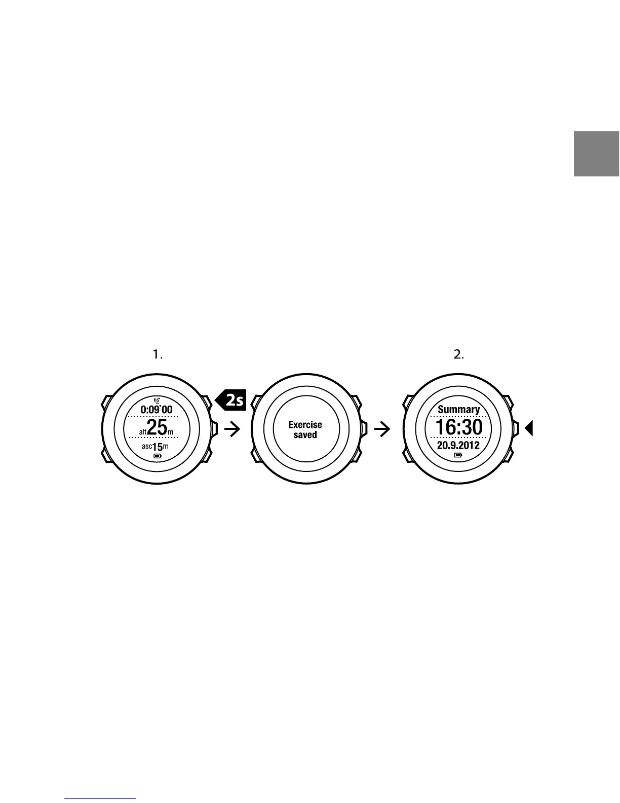 1. Keep [Start Stop] pressed to stop and save the exercise.