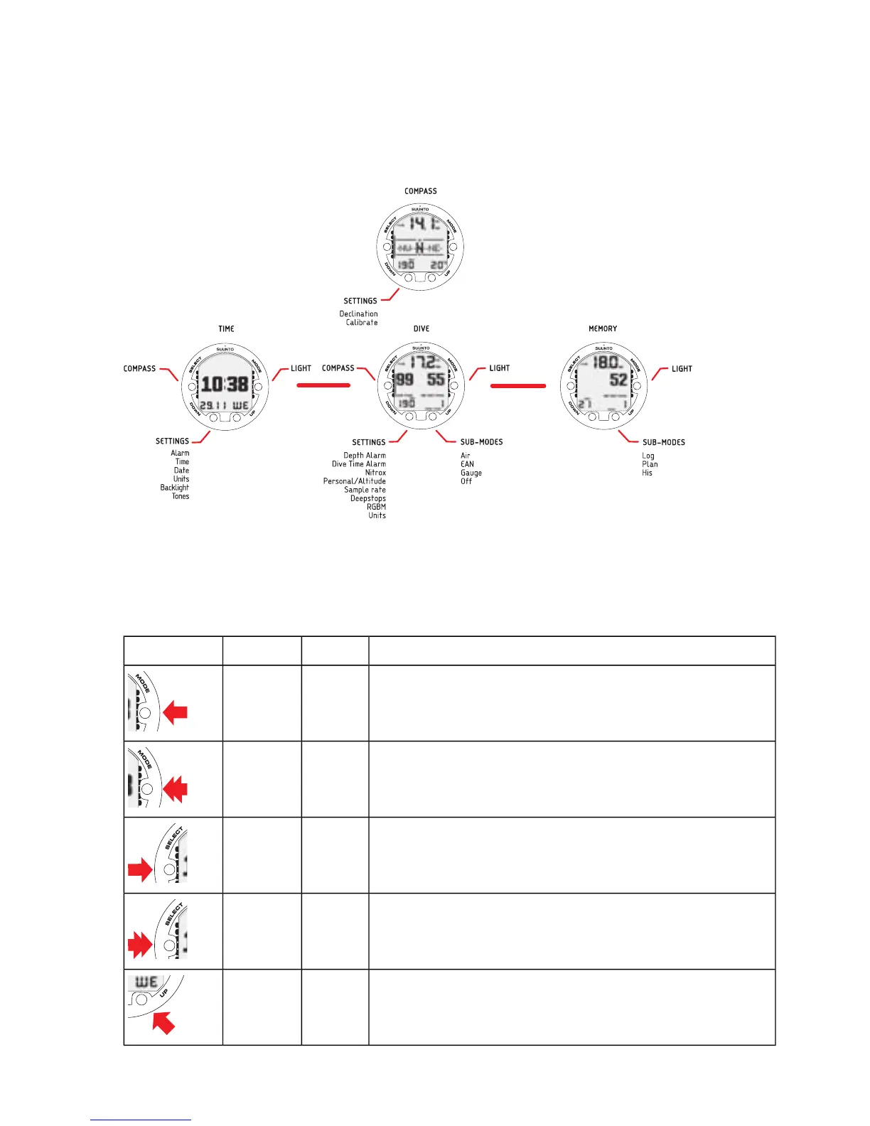 the main modes, press the MODE button. To select a submode in DIVE, PLAN and