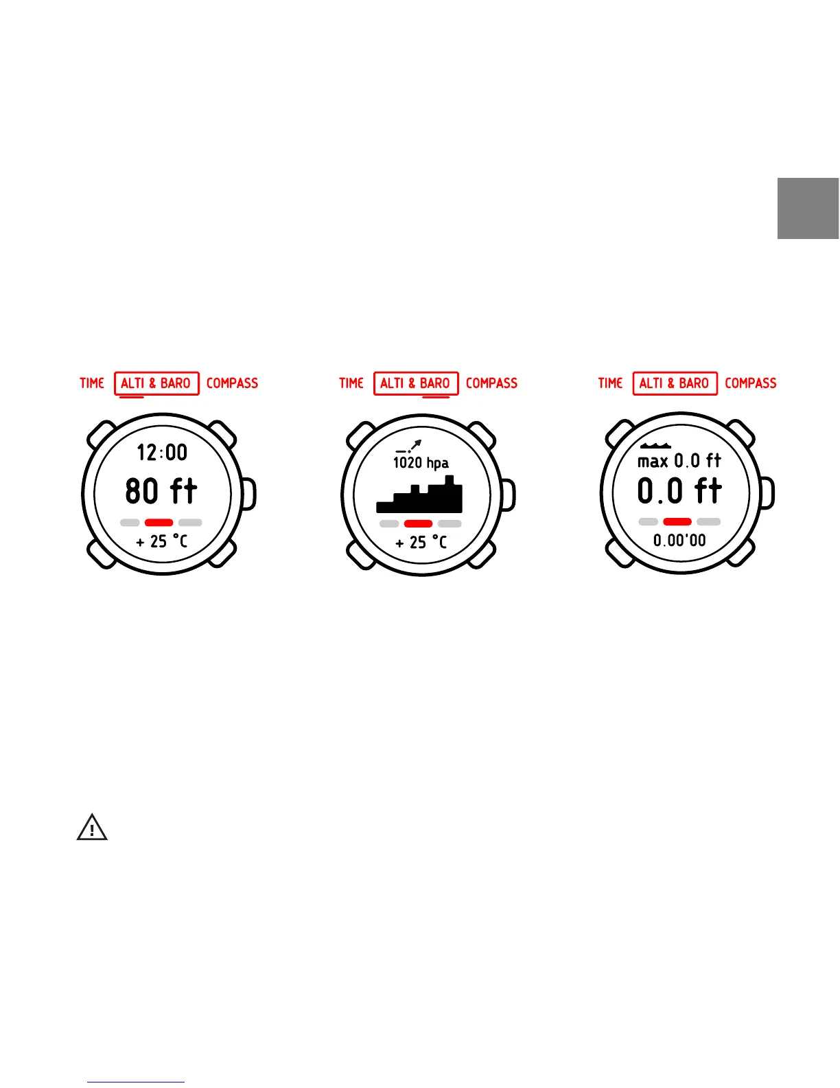 In the ALTI & BARO mode you can view the current altitude, barometric pressure