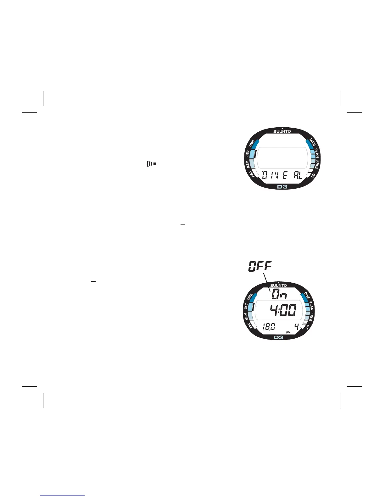 2. Wait two seconds until the Dive Alarm Setting