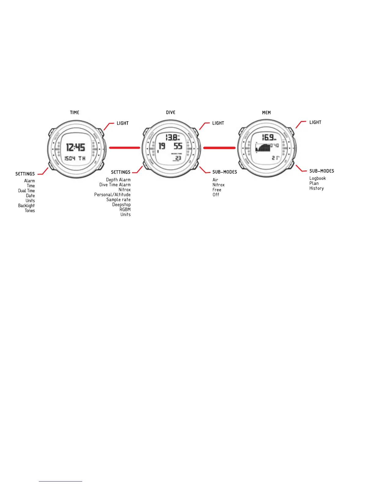 The table below explains the main functions of the dive computer's buttons. The buttons