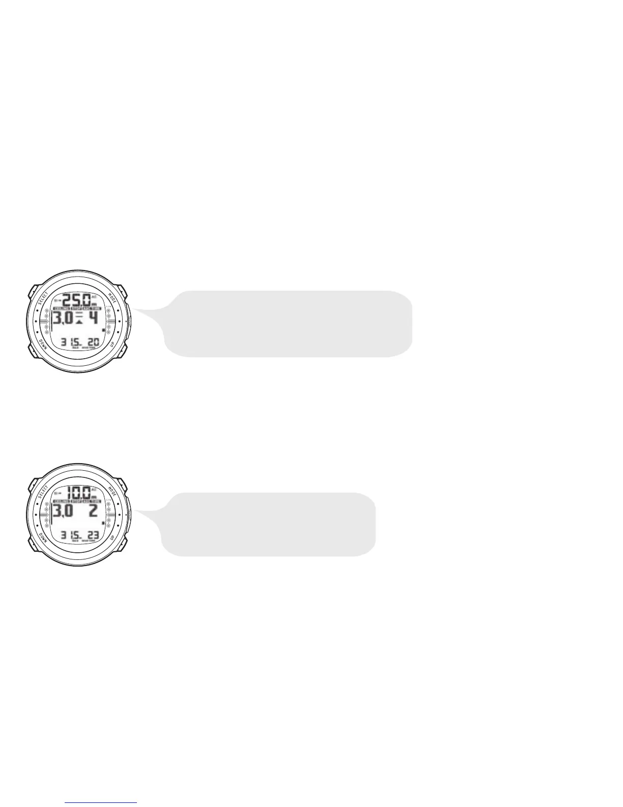 pointing arrow disappears. Below is an example of a decompression dive above the