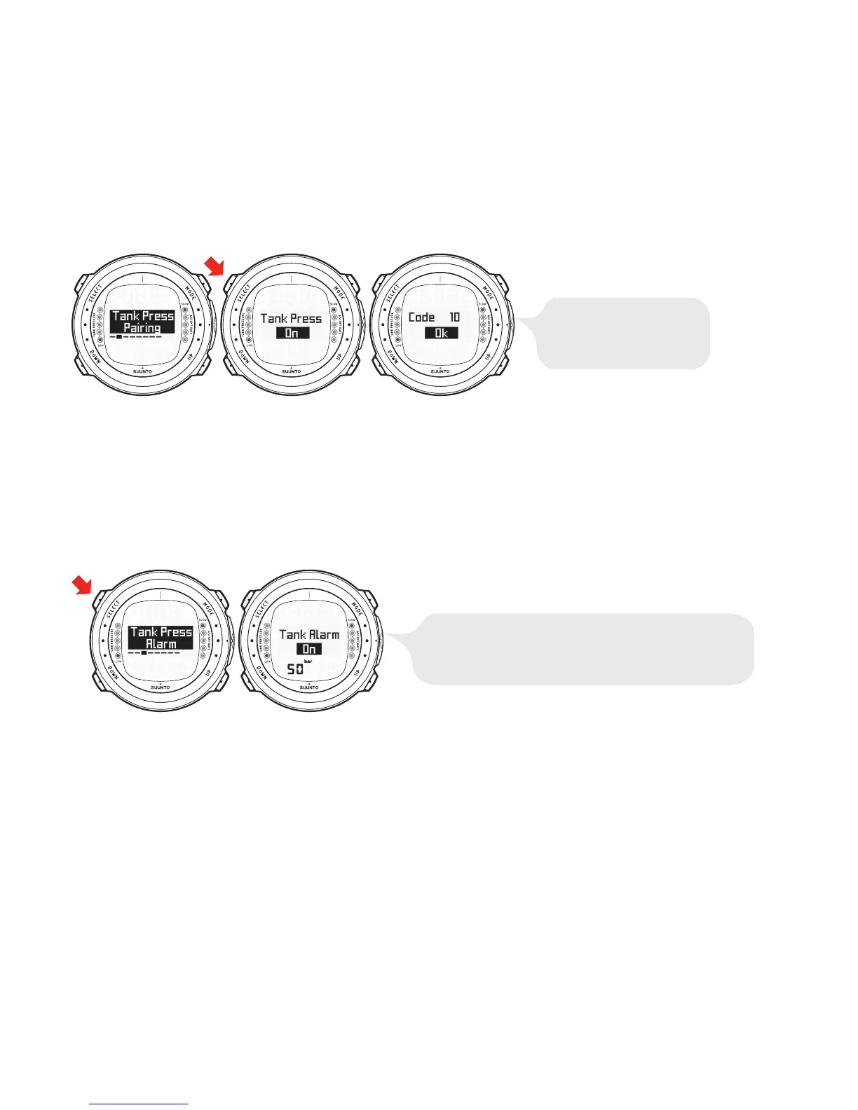 The 50 bar/700 psi alarm, however, is fixed and cannot be changed. You cannot ac-
