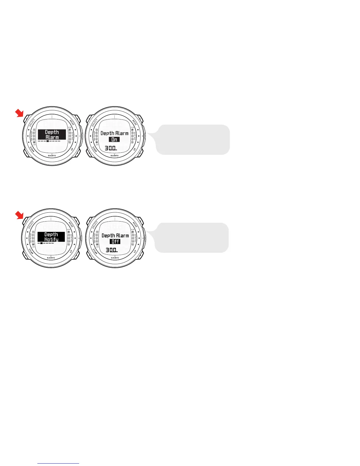 Suunto D4i - Setting the Depth Notify Alarm (FREE Mode); Setting the Dive-Time Alarm
