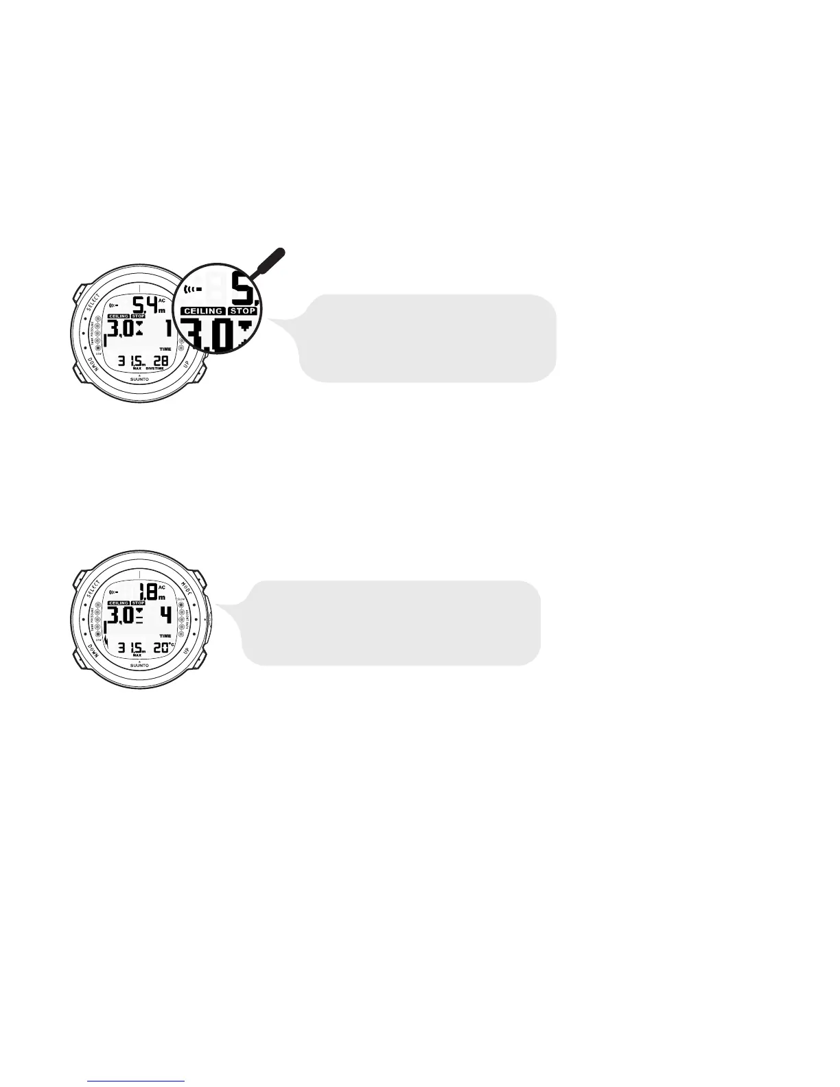 on. If you ascend above the Mandatory Safety Stop ceiling, a downward pointing arrow
