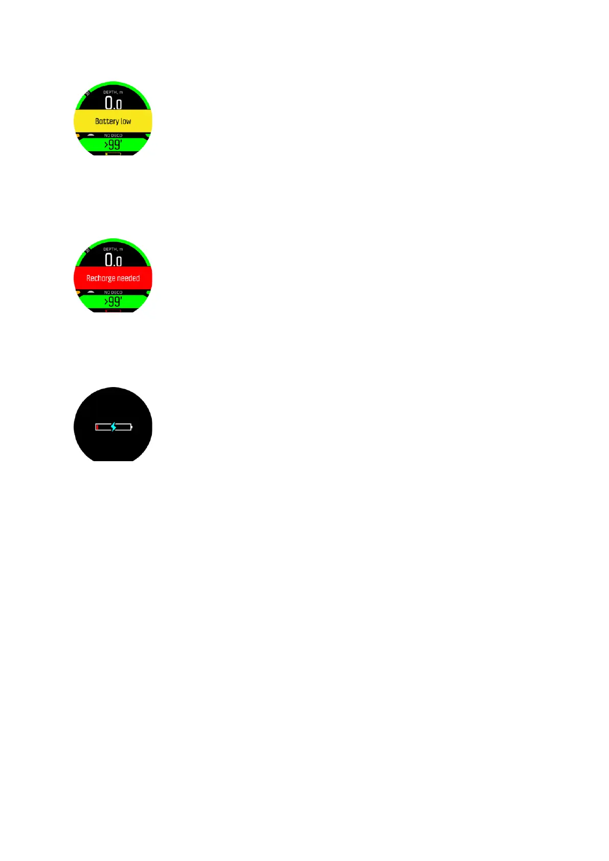 diving, when the charge level drops below 2 (two) hours, you cannot start a dive with Suunto