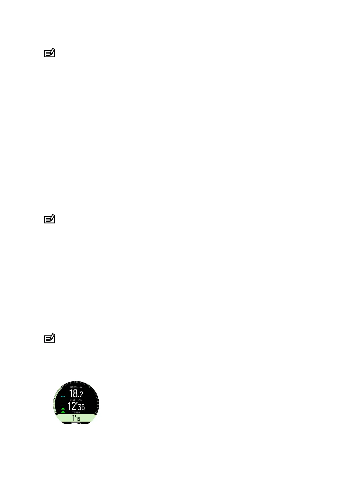 NOTE: Gauge mode is a bottom timer only and thus includes no decompression