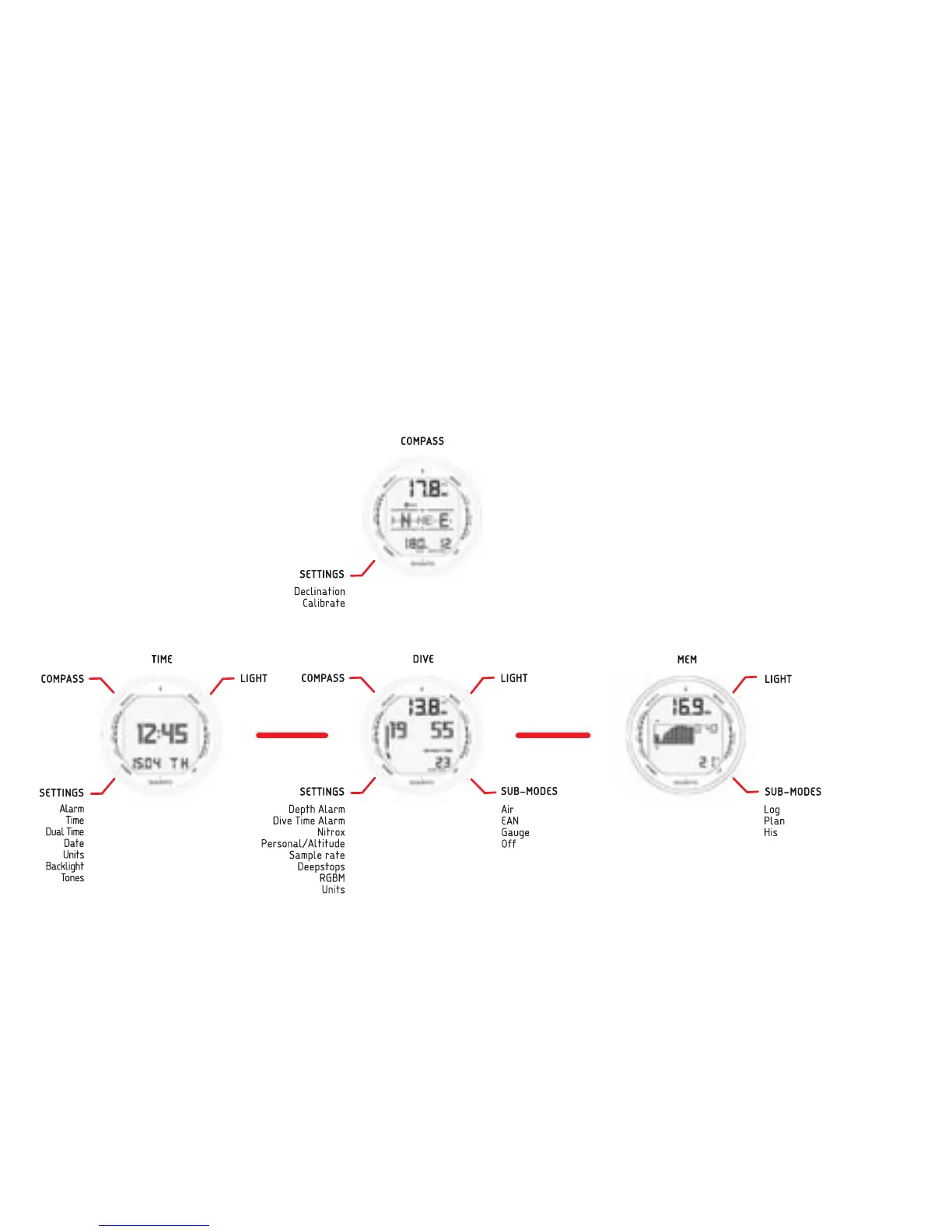 activated from either TIME or DIVE modes. To toggle between the main modes, press