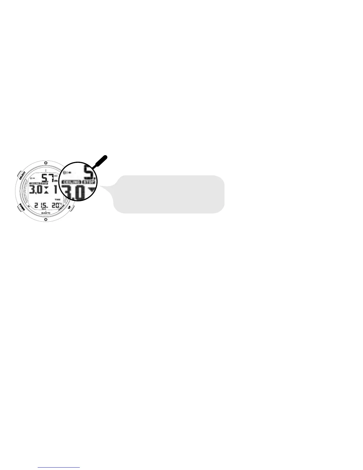 on. If you ascend above the Mandatory Safety Stop ceiling, a downward pointing arrow