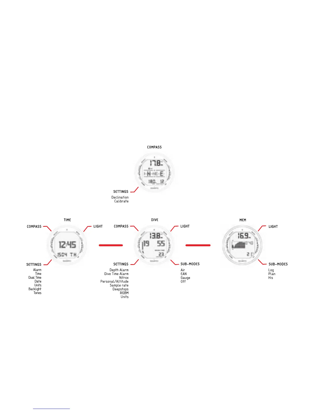activated from either TIME or DIVE modes. To toggle between the main modes, press