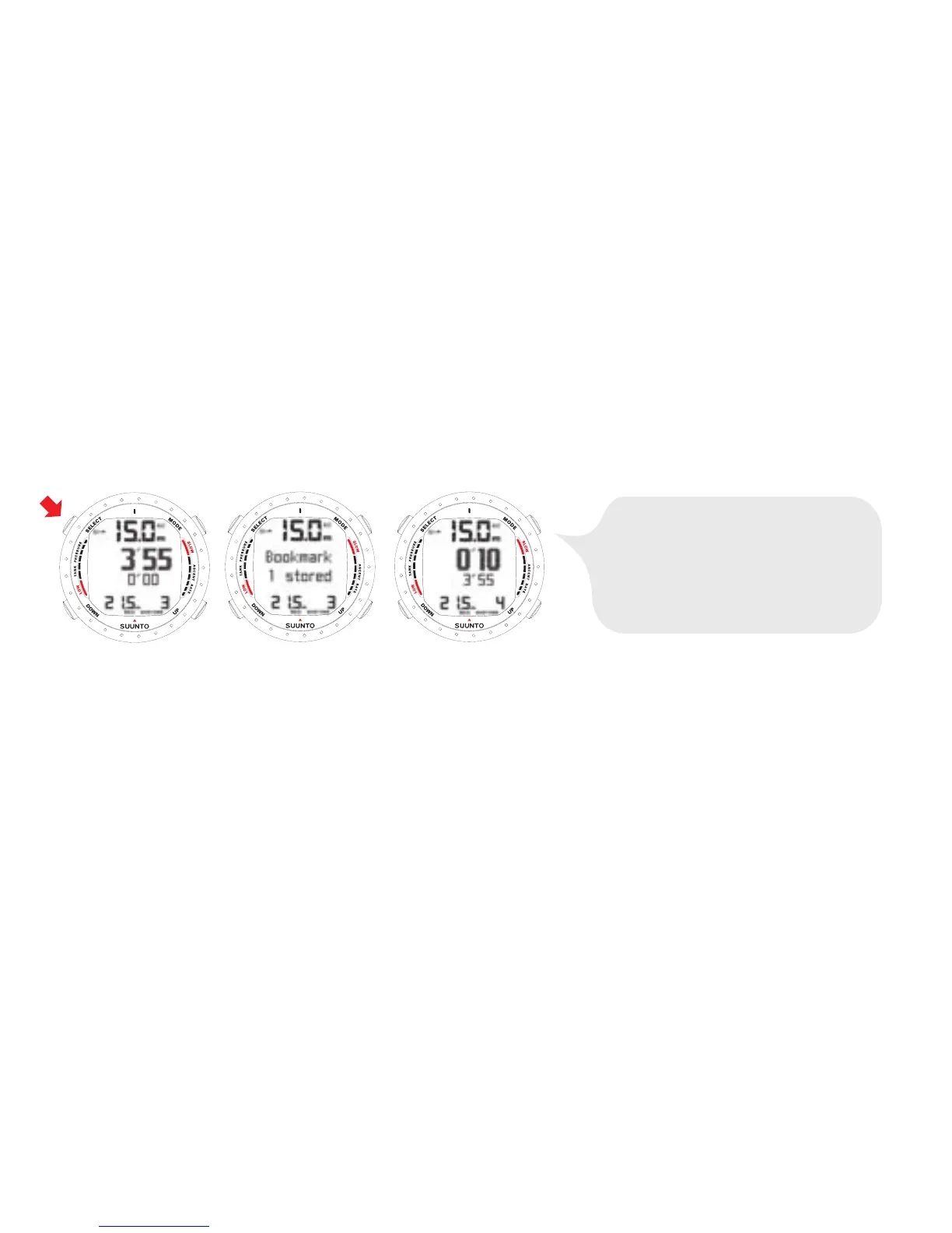 it can be reset during the dive and used as a stopwatch by pressing the SELECT