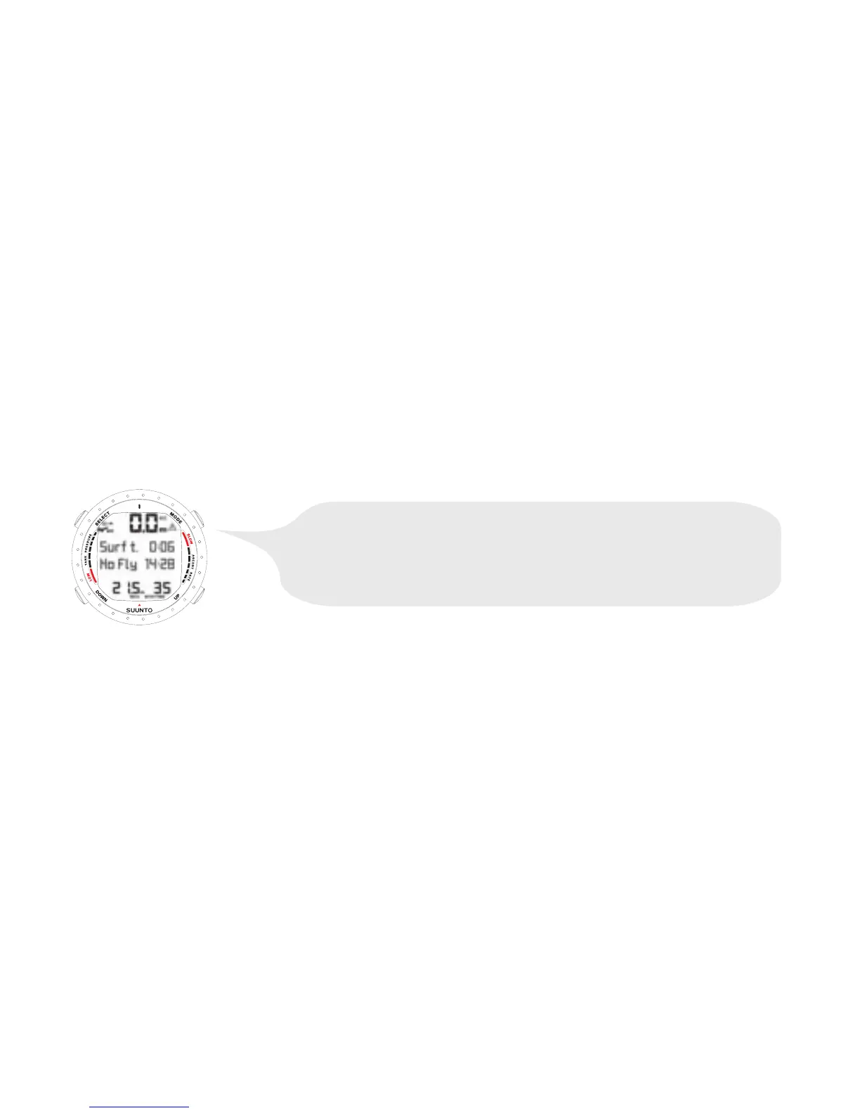 An ascent to any depth shallower than 1.2 m/4 ft will cause the DIVING display to be