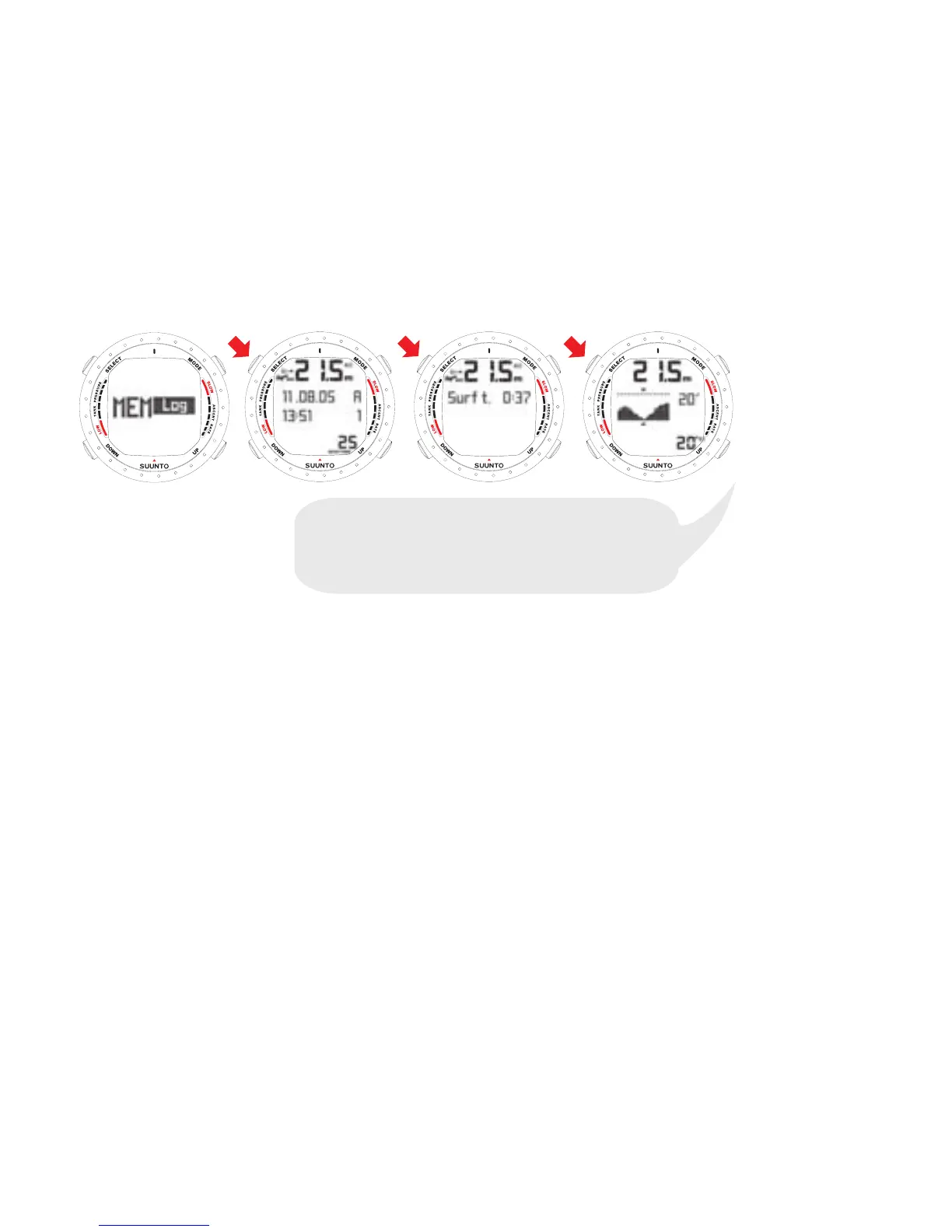 from the maximum depth reading of the Dive History up to 0.3 m/1 ft.)