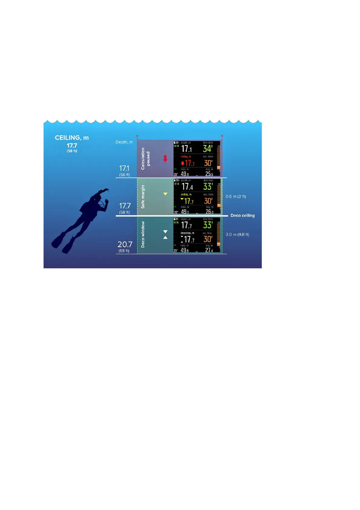 decompression ceiling (Deco ceiling) plus 3.0 m (9.8 ft) and the decompression ceiling. So