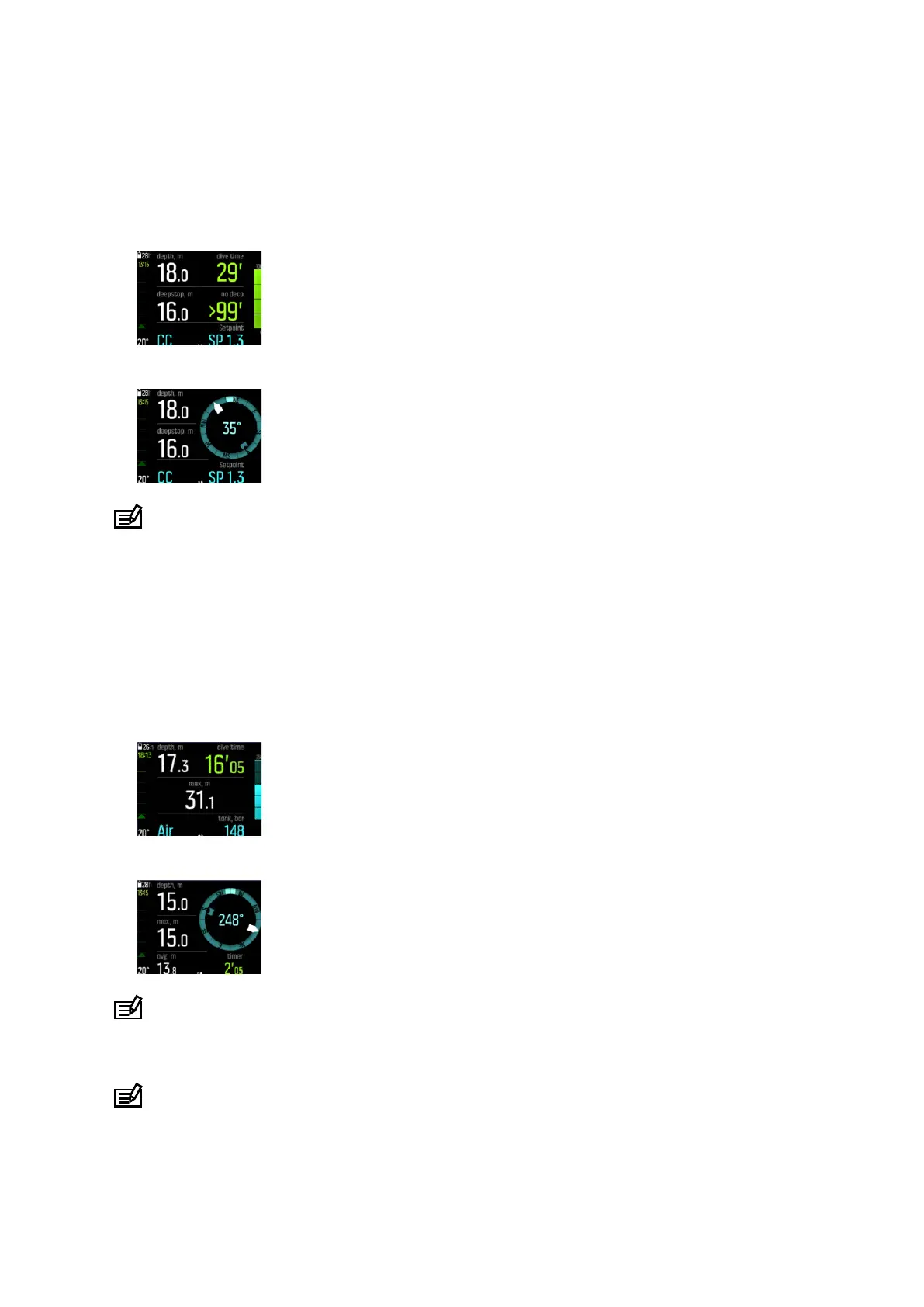 NOTE: After diving in Gauge mode, decompression calculation is locked for 48 hours. If