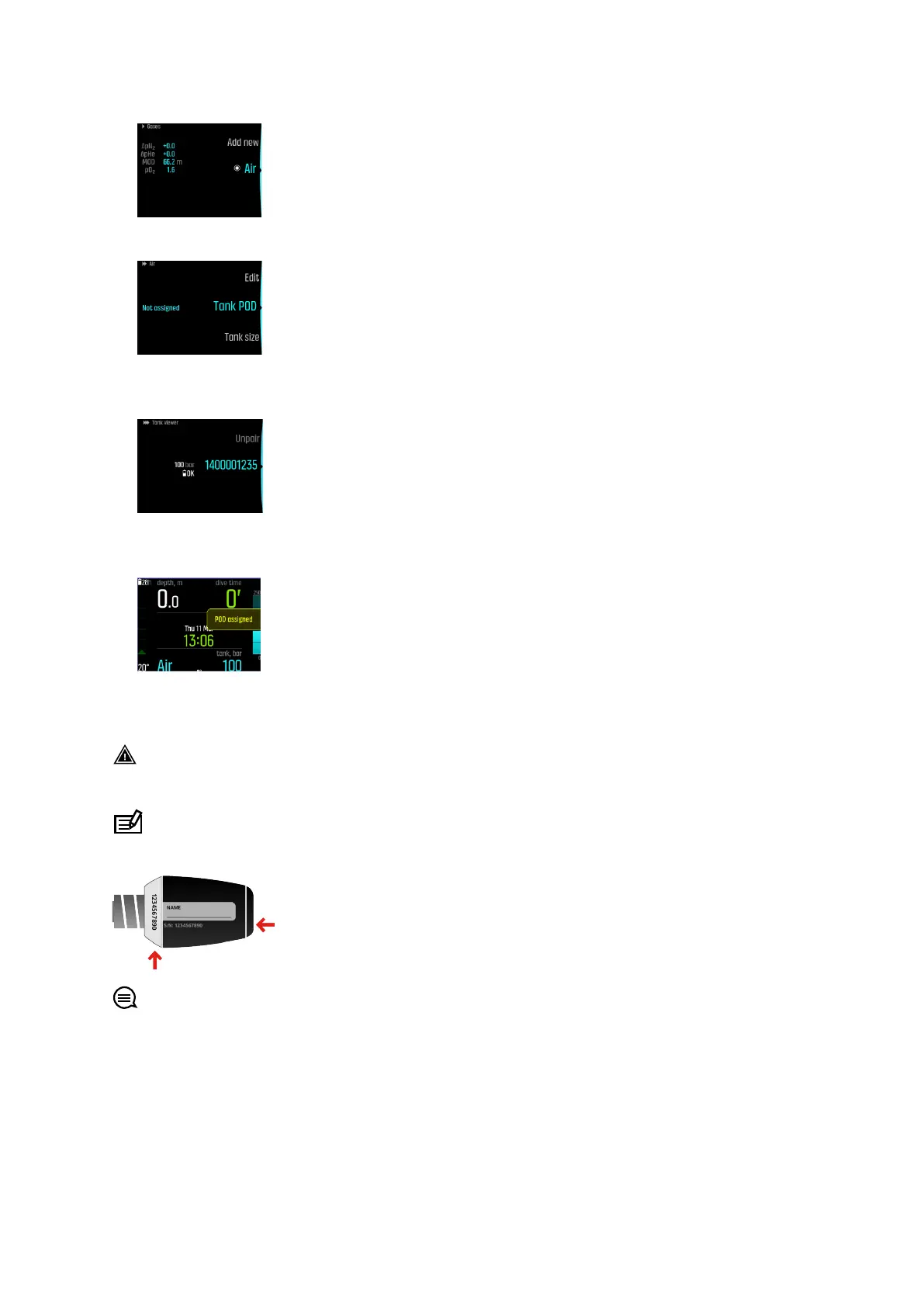 WARNING: If there are several divers using Tank PODs, always check before you dive