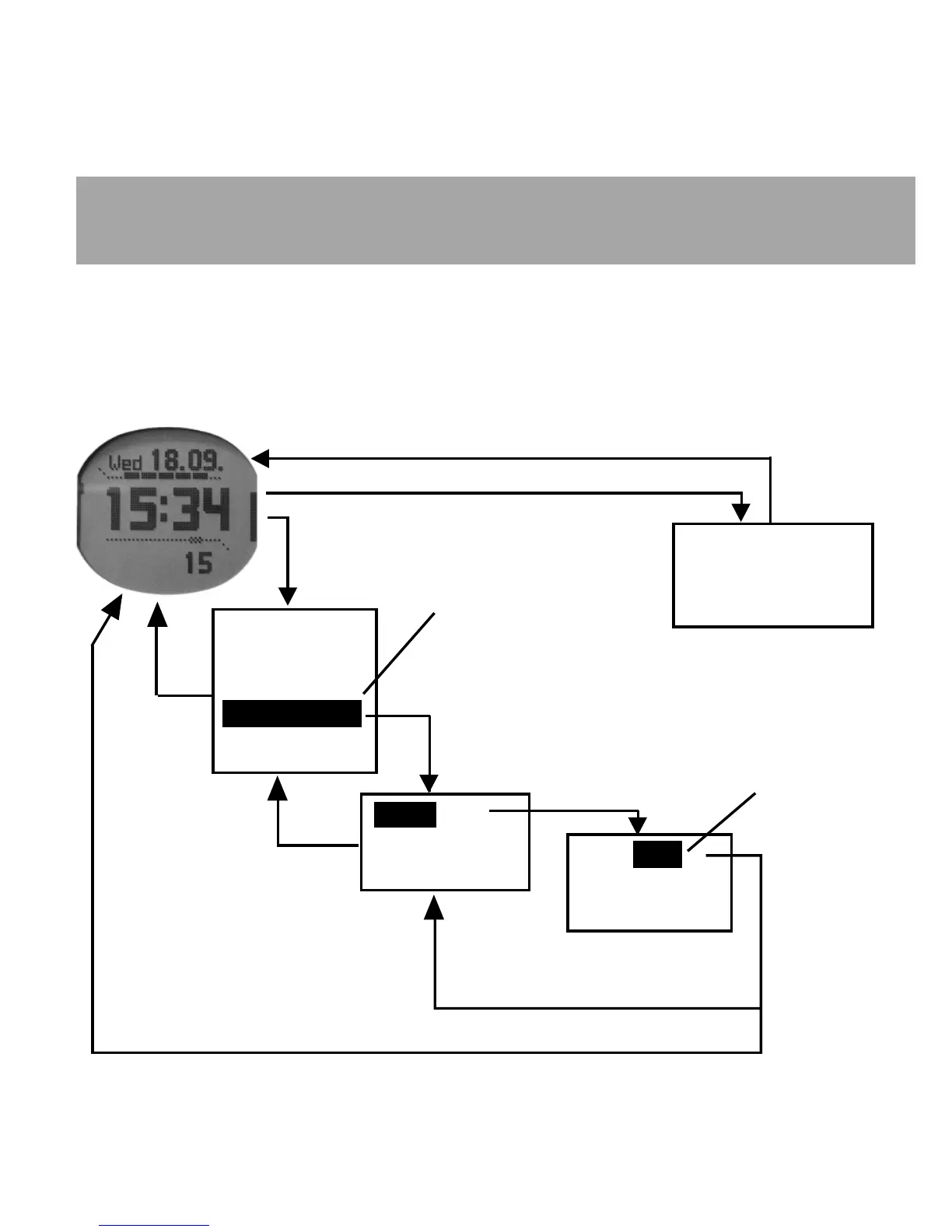 Each main mode in Suunto M9 has a submenu, which can have one or more submenus.