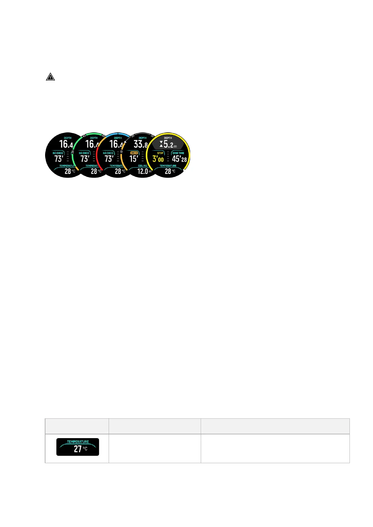 No deco: The arch shows the no deco time in a fixed range from 0 – 99. The arch is green for