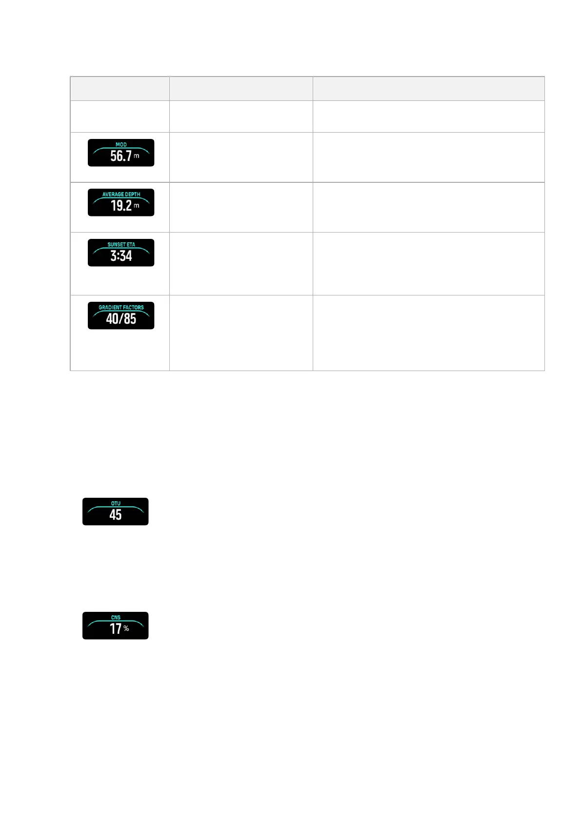 maximum allowable exposure. Suunto Ocean alarms you when CNS% reaches 80% (caution)