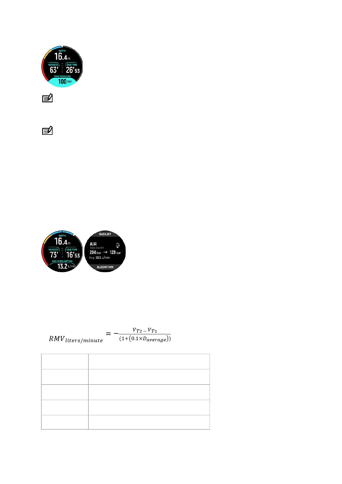 The RMV formula used in Suunto Ocean to calculate the gas consumption during the dive is