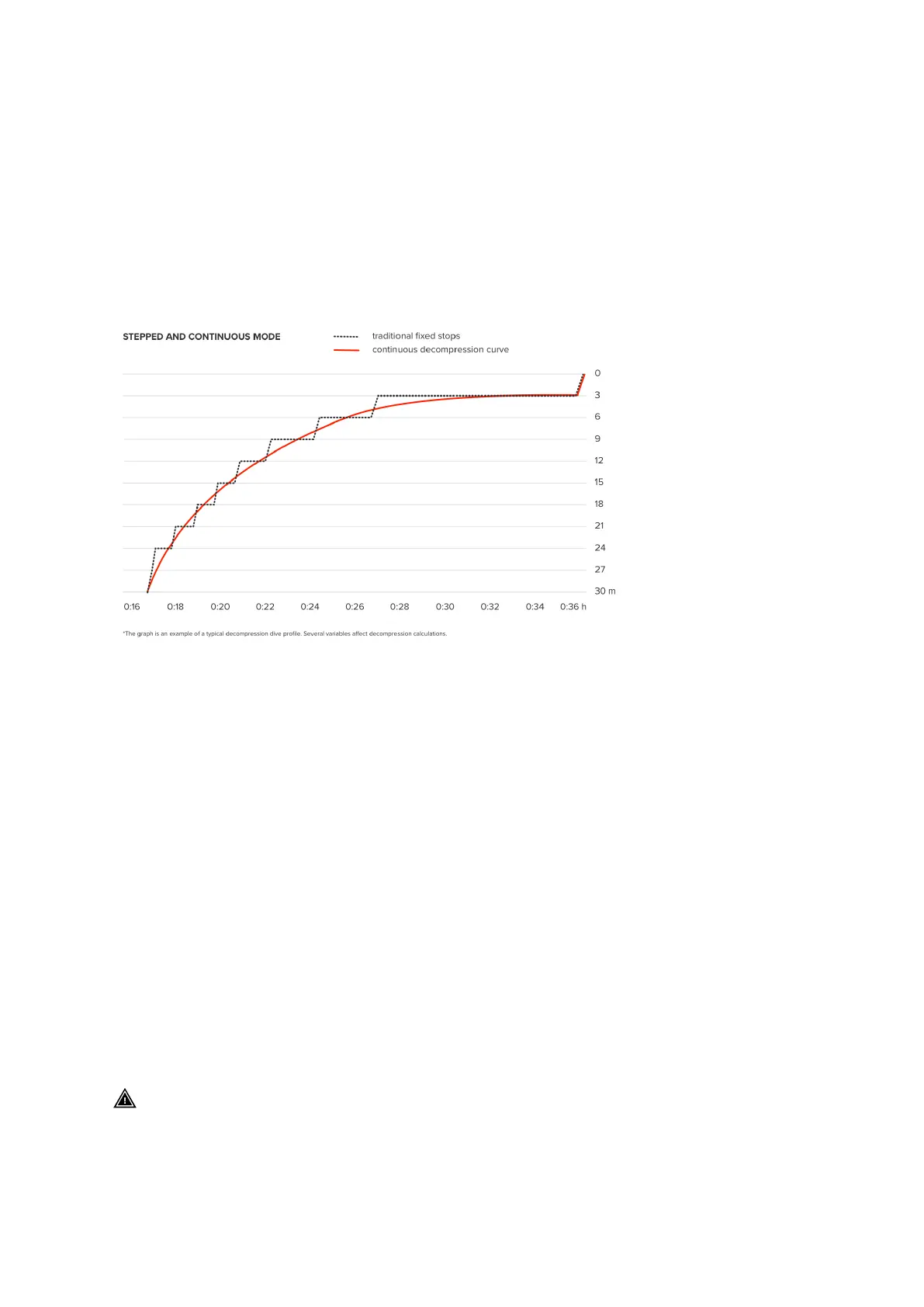 In this decompression profile, the ascent has been divided into traditional 3 m (10 ft) steps or