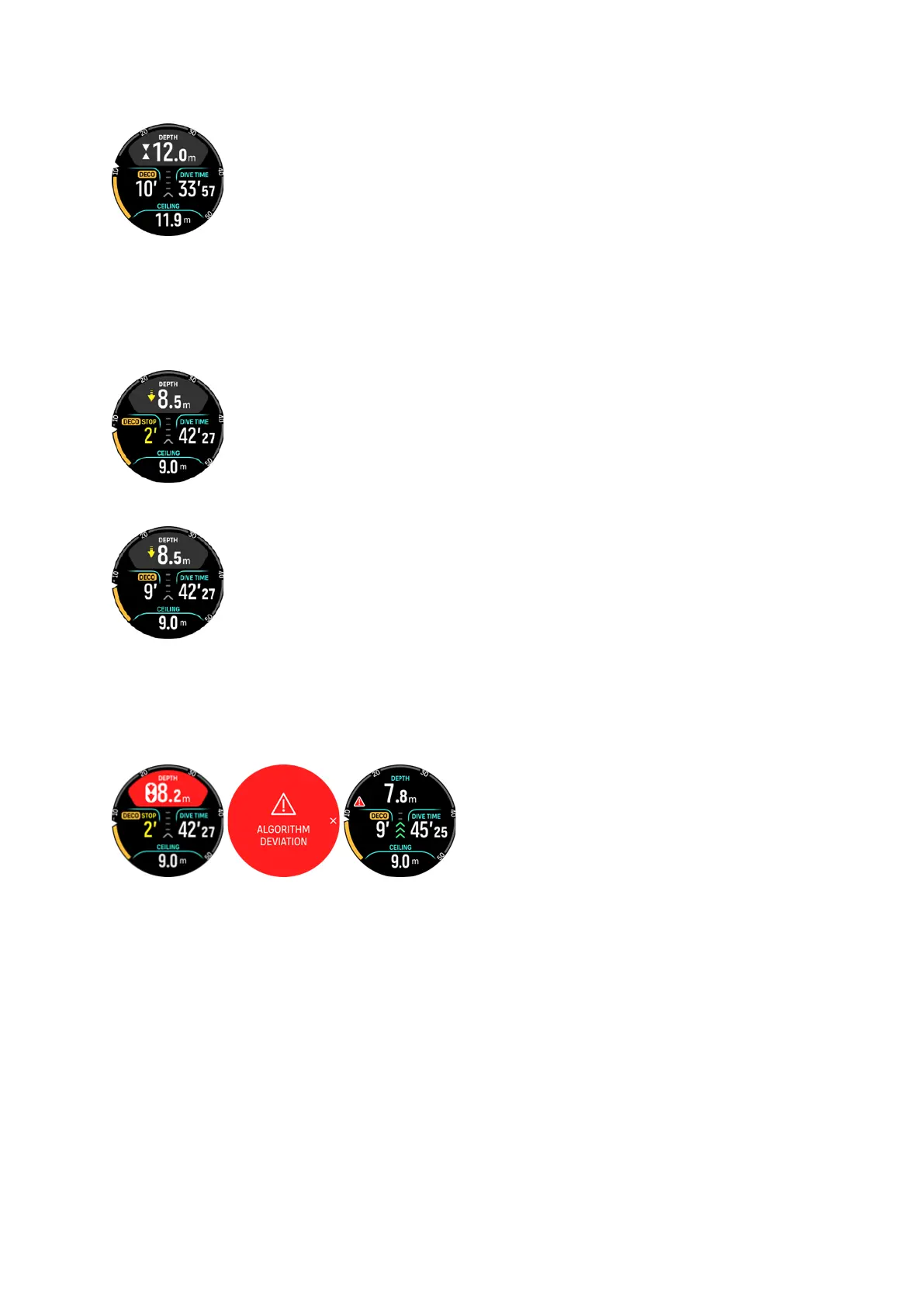 In all of the cases, the algorithm deviation icon will appear in the dive window, but the
