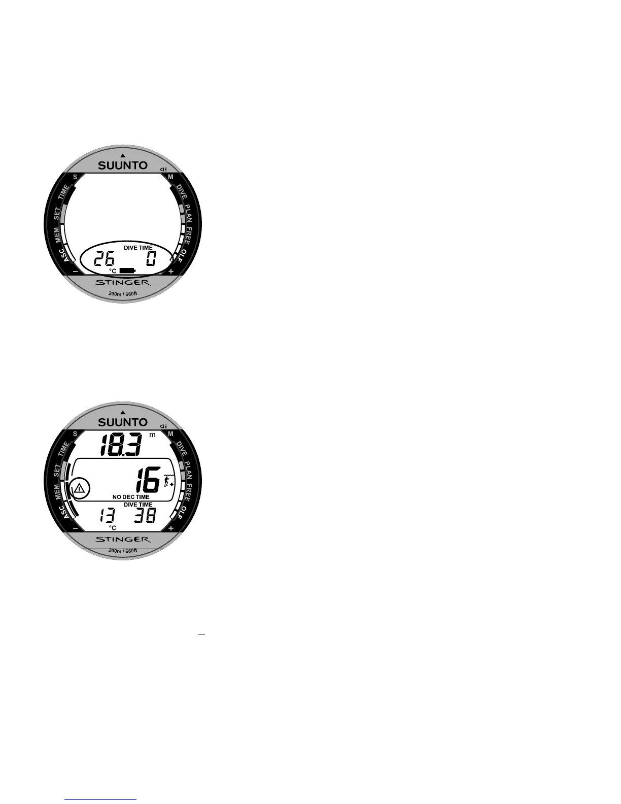 depth and time related alarms that you can set according