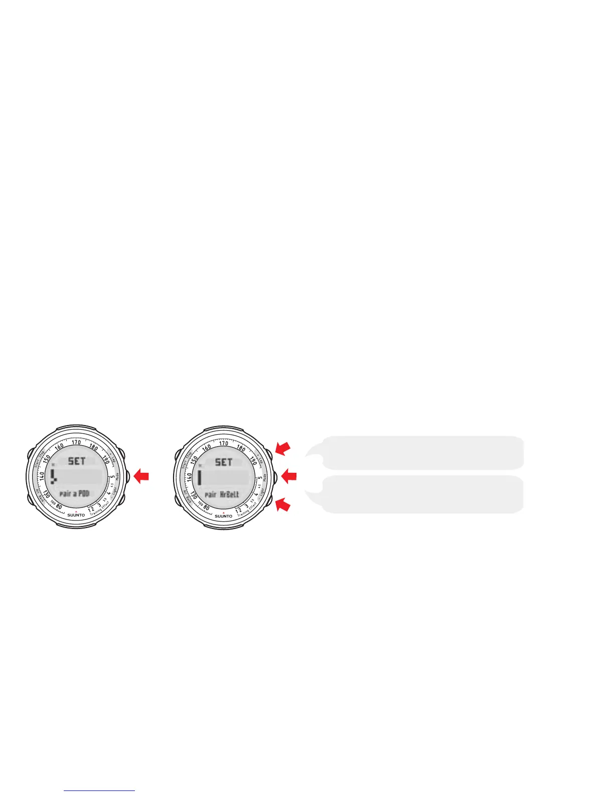 In the Pair a POD menu, you can pair your Suunto t3 with your heart rate transmitter belt, Suunto