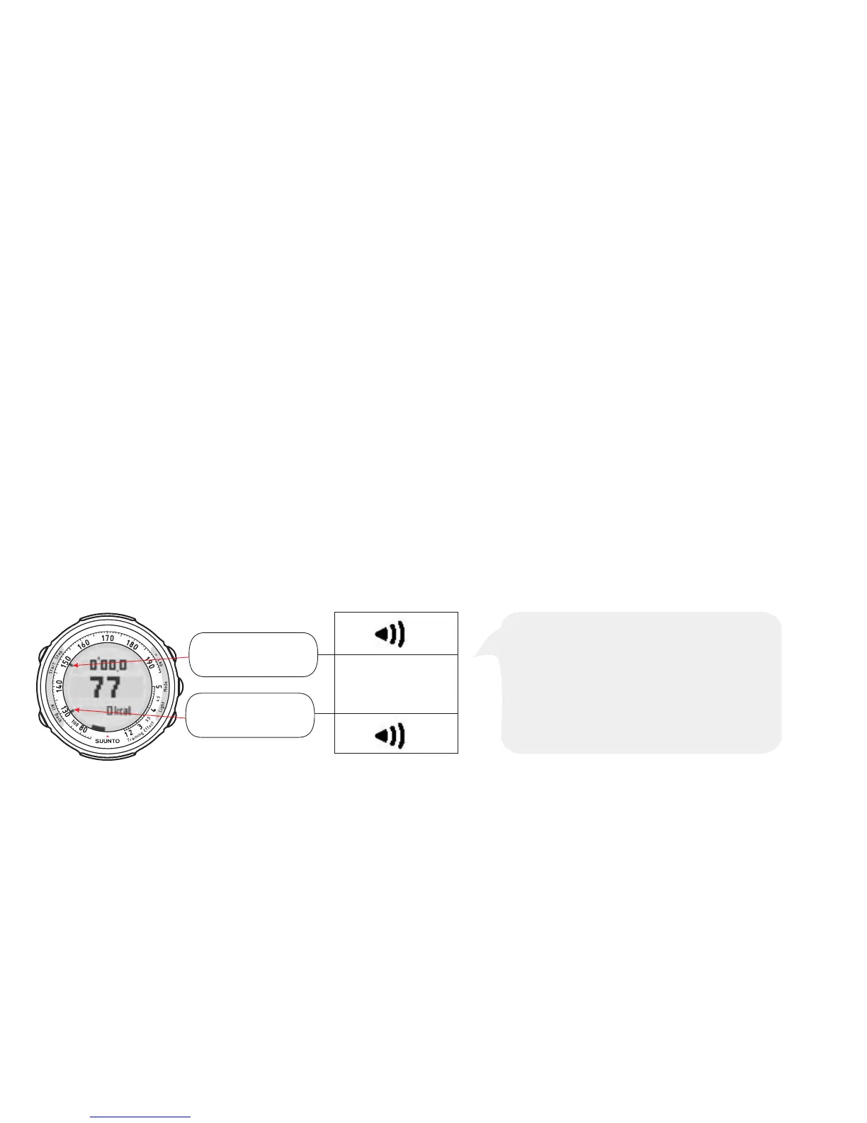 When you have reached the set HR limit, the alarm turns on. If you don't lower the HR within 4