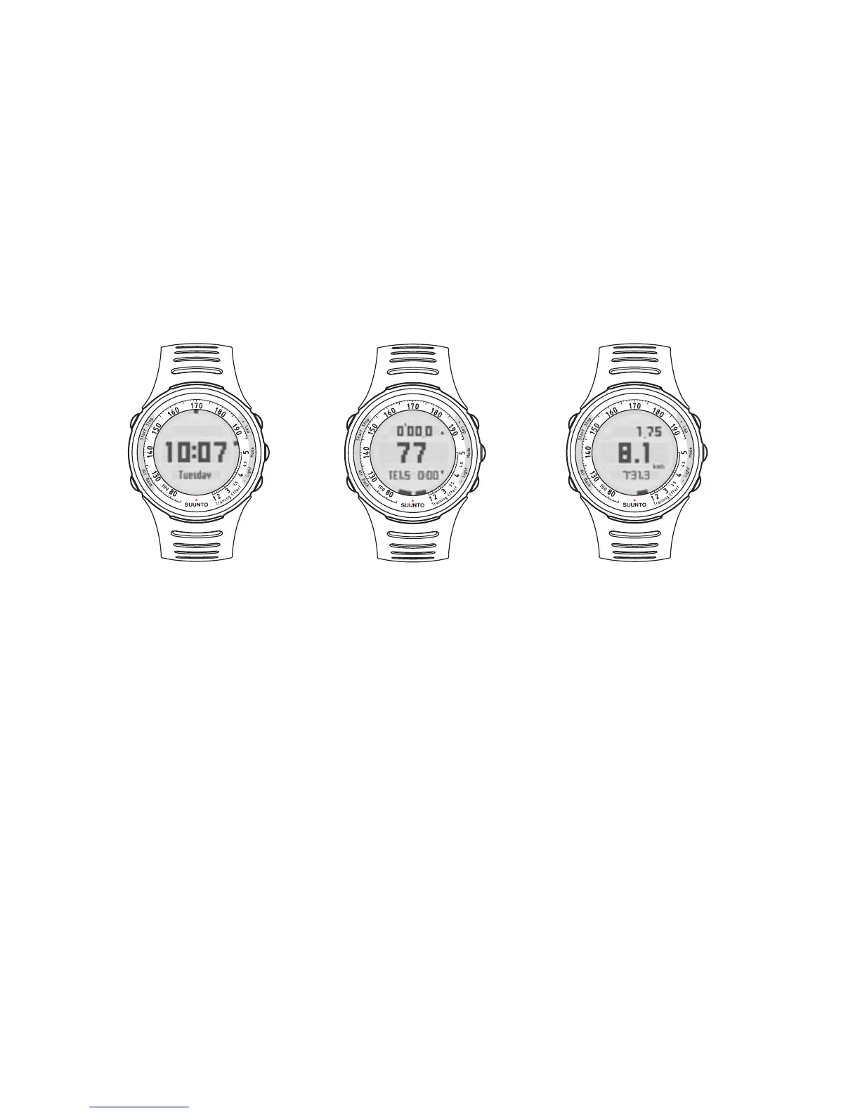 The Suunto wristop computer displays the icon of each mode on the screen: HR for Training mode,