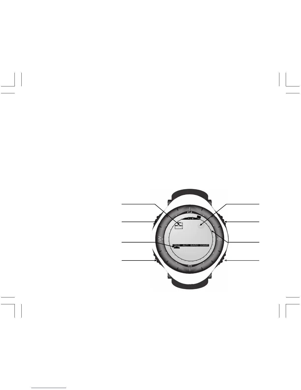 • Una barra indicadora de modo muestra los modos (funciones) principales del ordenador de muñeca (una