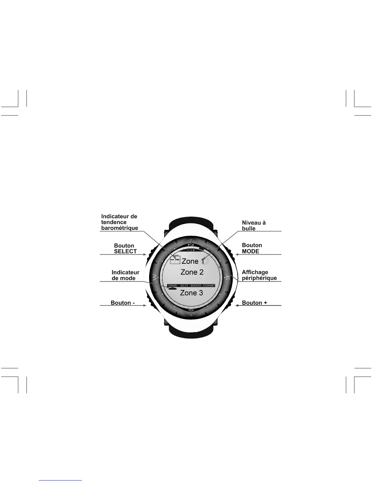 • Sous la zone 2, une barre affiche les modes principaux de votre ordinateur de poignet (une flèche triangulaire