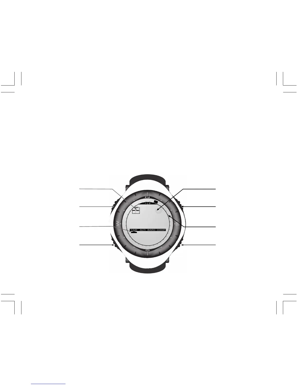 • A Mode Indictor Bar displays the main modes (functions) of the Wristop Computer (a triangle arrow located