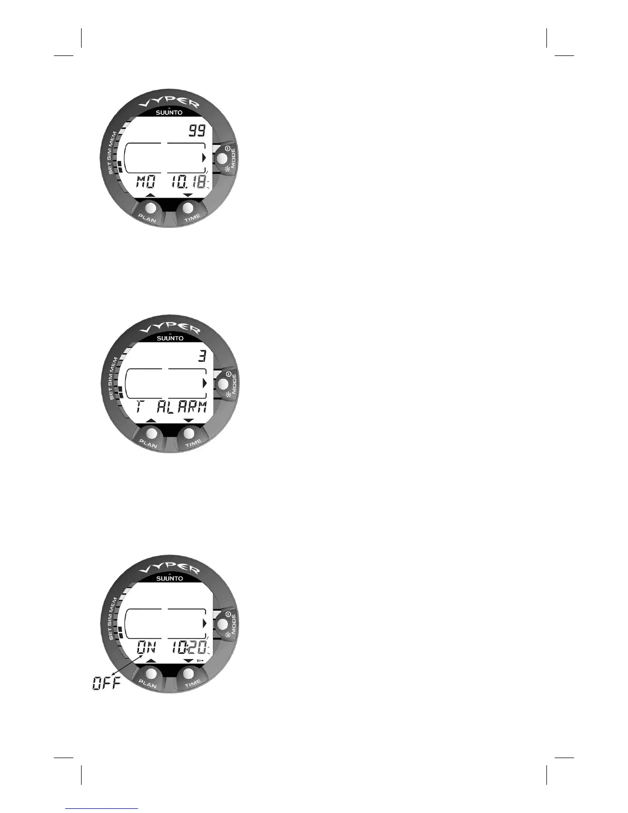 the alarm select MODE- 3 SET- 2 SET TIME- 3 T