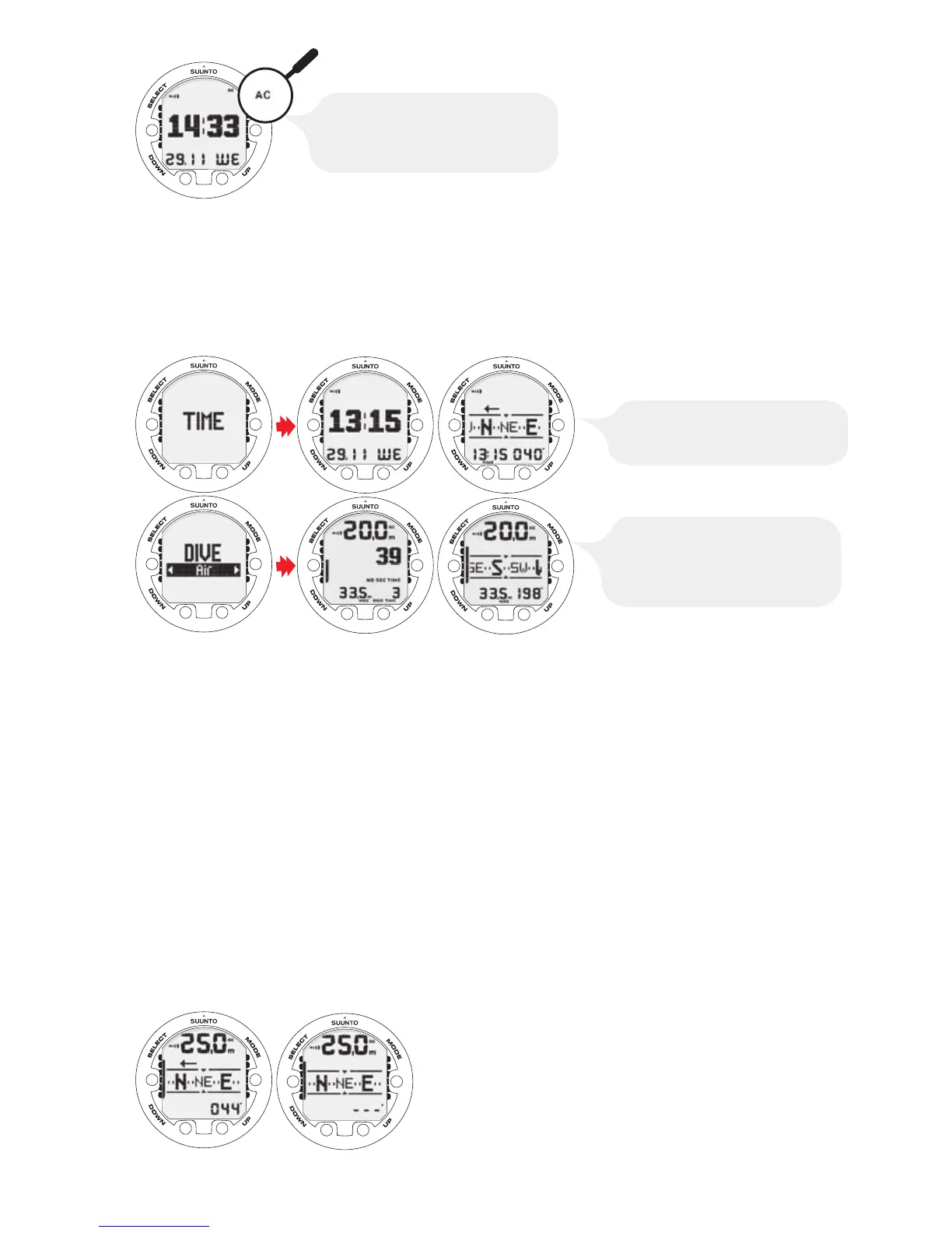 The Suunto Vyper2 displays the compass as a graphical representation of a compass