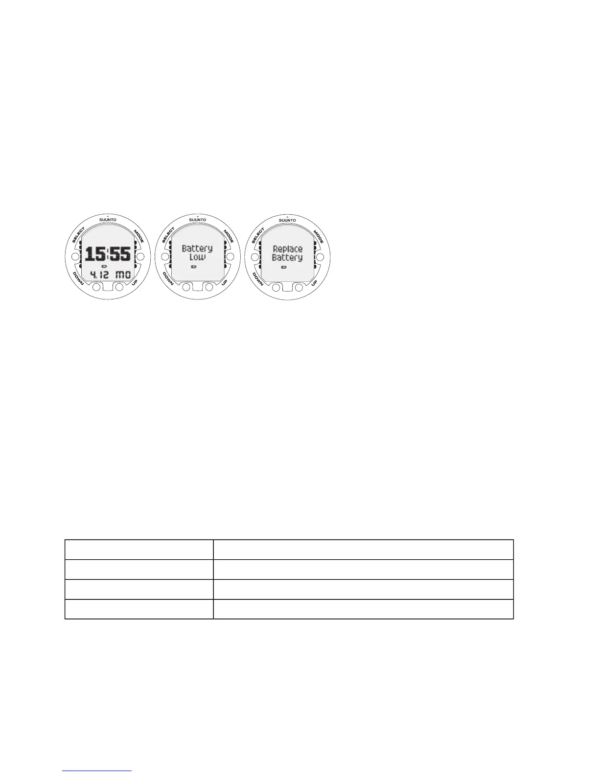 After the battery check, the Low Battery Warning is indicated by the battery symbol.