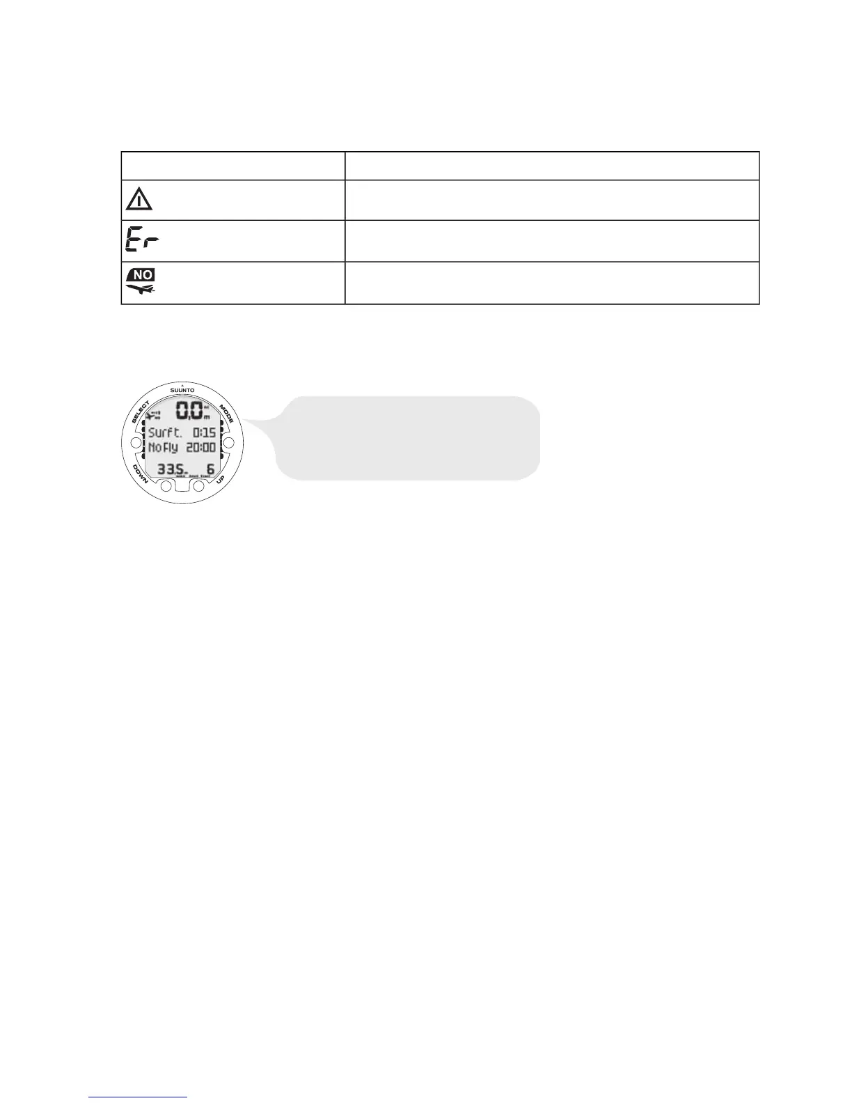 An ascent to any depth shallower than 1.2 m/4 ft will cause the DIVING display to be