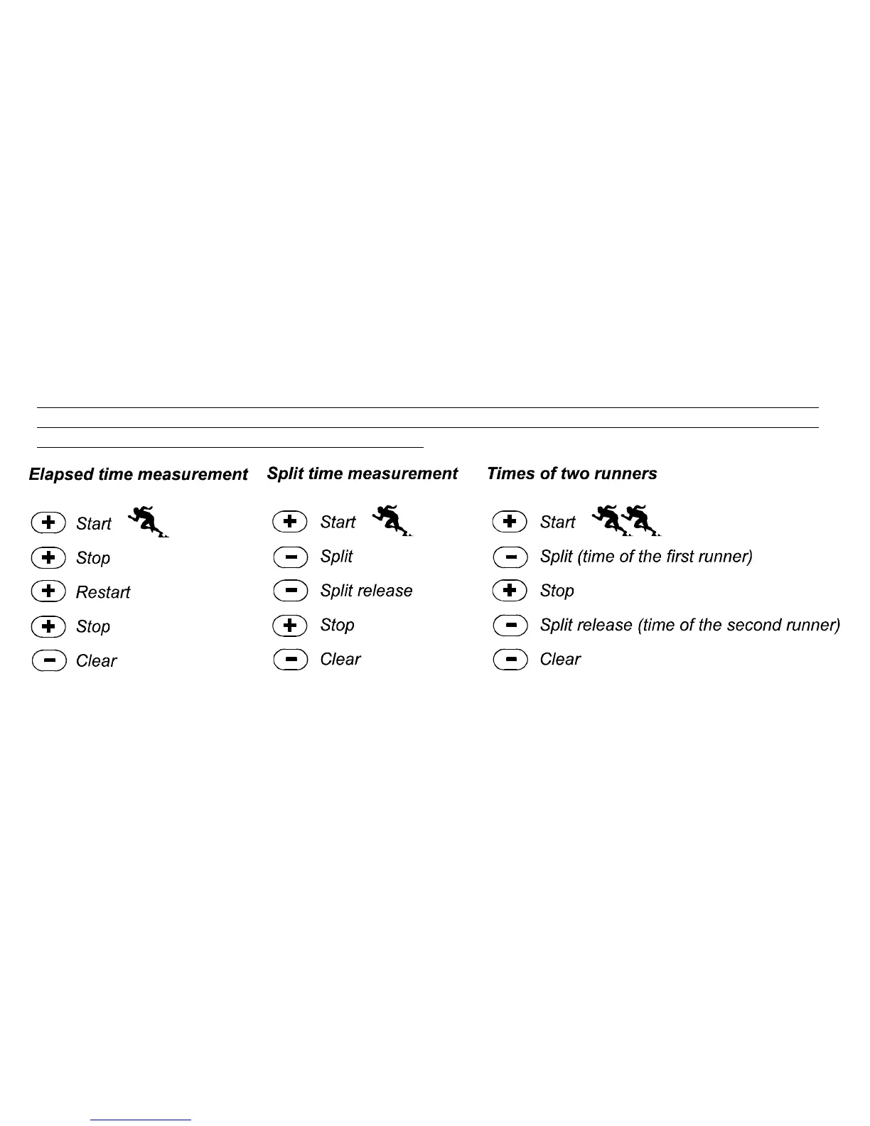 2. PRESS the [-] button once to stop the stopwatch to display the finish time of the first person.